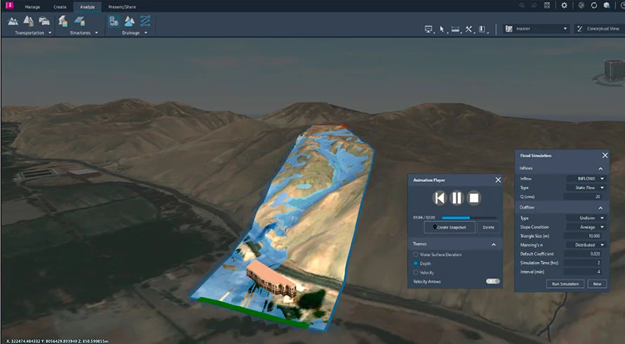 InfraWorks permite realizar simulaciones como: